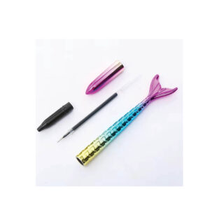 Mermaid.Ink Tales brings a splash of ocean magic to every word with. This mermaids tail-inspired pen combines a smooth, fine-point black ink with a stunning metallic ombré finish in shades of red, blue, pink, green, and yellow — a shimmer that captures the mystery and beauty of the sea.